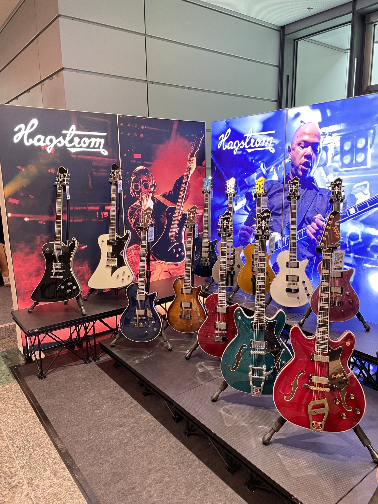 Visit us in Mannheim at the MCON Exhibition Center on Rosengartenplatz 2, where we will be present at Stand Level 0 Number 108 from September 22nd to 24th. We have exciting news prepared, including the latest generation of Swede and Super Swede Singlecut models. Of course, we are also bringing along a fantastic selection of Hagstrom instruments. It's a good idea to secure your tickets now and join us! We're looking forward to seeing you. As an appetizer, here are a few shots from last year's event: